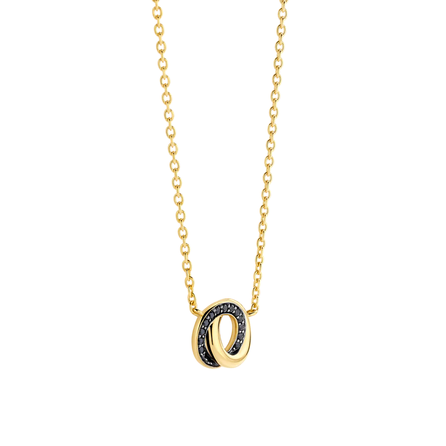 Ontdek gedurfde elegantie met dit TI SENTO vergulde collier 3915BY. Twee in elkaar grijpende cirkels vormen een sculpturale hanger: de ene gepolijst tot een spiegelende glans, de andere verfraaid met met de hand gezette zwarte zirconia voor een verfijnd contrast. Vervaardigd uit 925 sterling zilver en afgewerkt met een stralende goudkleurige vergulding brengt dit collier grafische vormen en tastbare details samen. Het slanke silhouet en de contrasterende texturen maken het tot een eigentijdse must-have voor liefhebbers van minimalistische sieraden met een twist. Ideaal voor dagelijks gebruik of gecombineerd met andere goudkleurig vergulde colliers voor extra impact, het ademt zowel kracht als subtiele glamour. Dit statement hanger-collier past naadloos in elke sieradencollectie – perfect om te mixen met chains, chokers en betekenisvolle hangers. Nikkelvrij en hypoallergeen, ontworpen voor zowel comfort als uitstraling.