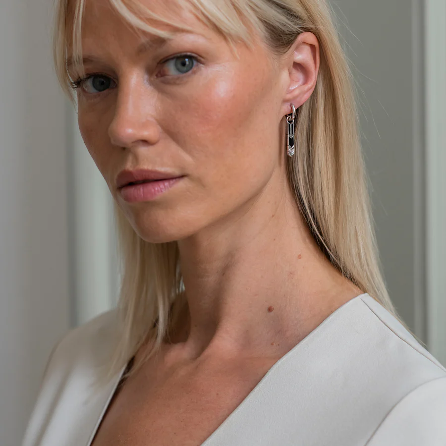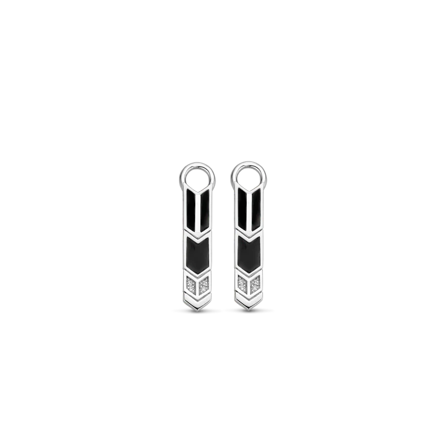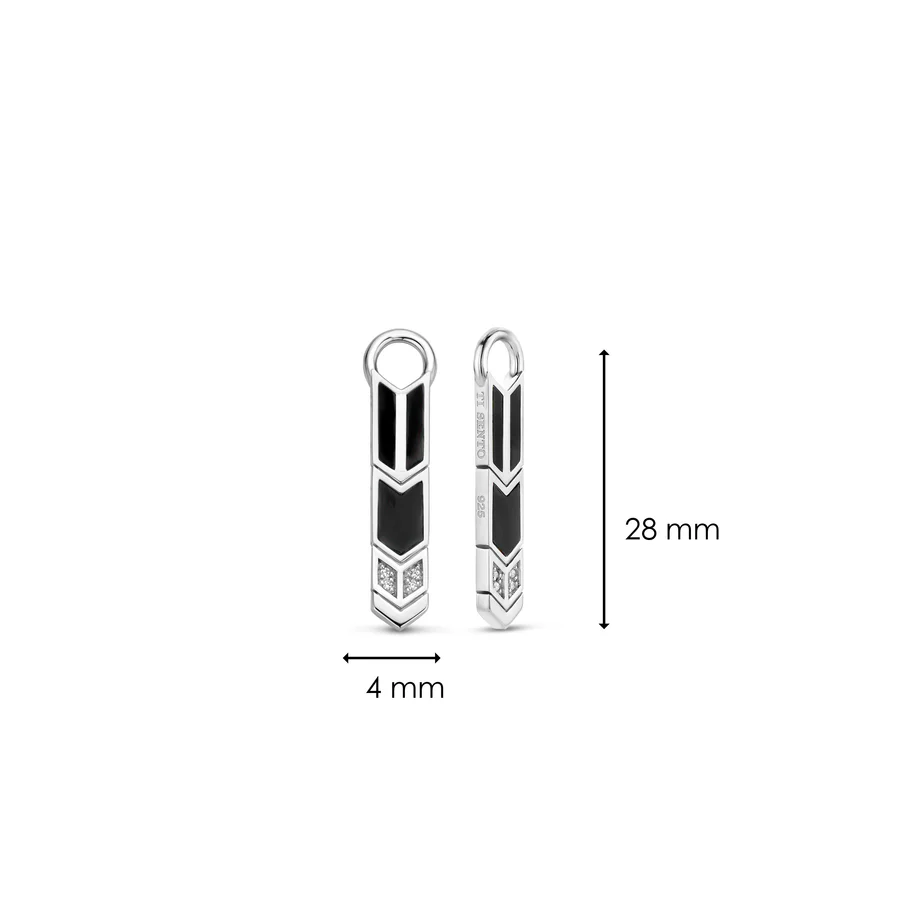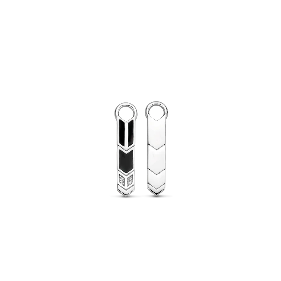 Deze zilveren TI SENTO oorbedels 9225BO hebben zwarte onyx stenen en glinsterende witte zirkonia pavé. Het prachtige patroon met pijlveren symboliseert voorwaartse beweging en richting. Hang deze oorbedels aan je hoepels en duik in de prachtige wereld van de jaren 70!