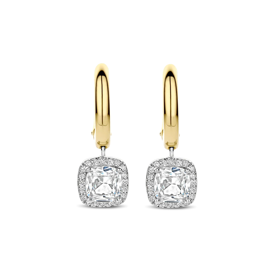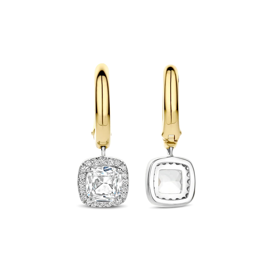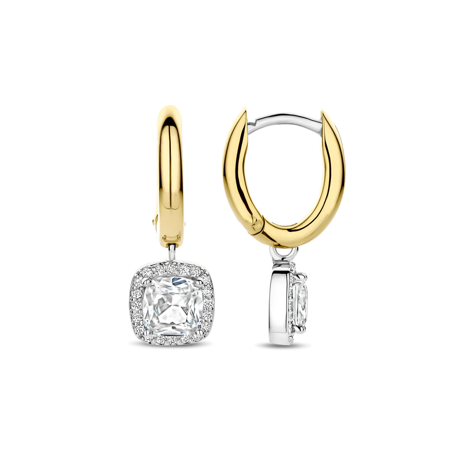 Ontdek stralende dualiteit met deze TI SENTO goudkleurig vergulde zilveren oorbellen 78030ZY. Vervaardigd uit 925 sterling zilver, draagt elke slanke goudkleurig vergulde ring een 7 mm fantasy-cut witte cubic zirconia die zachtjes onder het oor meebeweegt. Een fijne halo van pavé-steentjes, geplaatst in een koel platinakleurig vergulde rand, versterkt de luminantie van de centrale steen en voegt verfijnde textuur toe terwijl de oorbellen het licht vangen. Draag ze solo voor moeiteloze dag-tot-avond elegantie, of combineer ze met delicate studs voor een zorgvuldig samengestelde ear stack. Nikkelvrij en hypoallergeen, voor blijvende glans en lichtgewicht comfort.