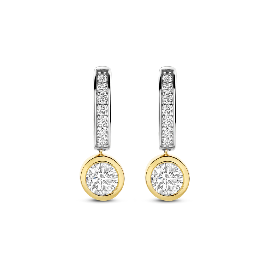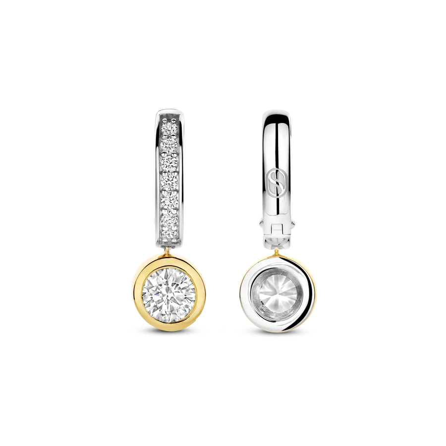Omarm verfijnde fonkeling met deze TI SENTO vergulde oorbellen 78032ZY. Vervaardigd uit 925 sterling zilver zijn deze elegante oorbellen voorzien van een rij pavé gezette witte zirconia langs de platinakleurig vergulde hoops, gecombineerd met briljant geslepen solitaires die hangen in gladde goudkleurige randzettingen. De cirkelvormige hangers bewegen zachtjes met je mee en vangen het licht vanuit iedere hoek voor een vleugje tijdloze schittering. Verfijnd maar veelzijdig, ze zijn perfect om dagelijkse looks te verrijken of om een subtiele glamour toe te voegen aan avondensembles. Nikkelvrij en hypoallergeen, ze bieden de hele dag comfort met een blijvende glans.