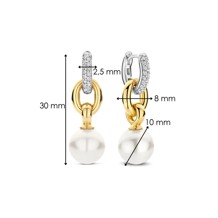Ti Sento oorringen 78016YP — elegante vergulde damesoorringen van 925 sterling zilver met fonkelende zirkonia en verfijnde parel. Tijdloos en vrouwelijk ontwerp met luxe uitstraling. Verkrijgbaar bij Juwelier Schouten – Middenwaard, Heerhugowaard.