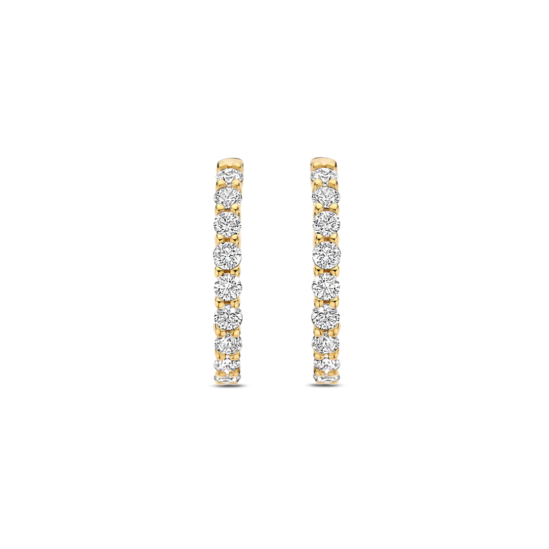 Deze Ti Sento oorringen zijn verguld en bezet met zirkonia stenen, waardoor ze een luxe uitstraling hebben. De oorbellen passen perfect bij elke outfit, of het nu een casual of een formele gelegenheid is. Draag ze solo voor een subtiele look of combineer ze met andere Ti Sento sieraden voor een statement uitstraling. Maak je outfit compleet met deze prachtige oorbellen!