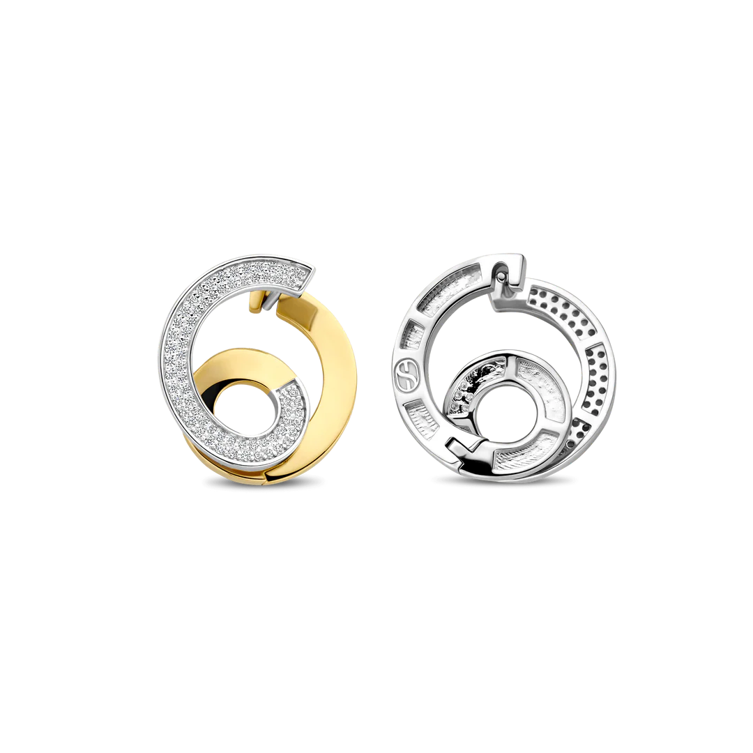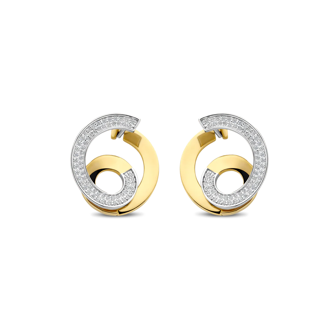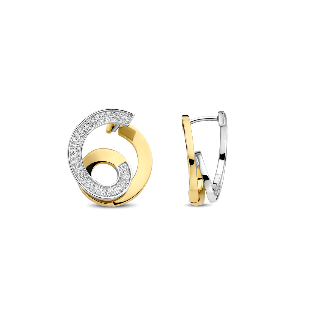 Omarm sculpturale elegantie met deze TI SENTO vergulde oorbellen 78040ZY. Vervaardigd uit hoogwaardig 925 sterling zilver en afgewerkt met een stralende goudkleurige vergulding trekt hun dubbele swirl-ontwerp de blik naar binnen met een dynamisch gevoel van beweging. Een pavé gezette binnen- en buitenspiraal fonkelen met zirconia en creëren een hypnotisch spel van licht en dimensie. Met een diameter van 18 mm bieden deze oorbellen gedurfde geometrie met een zachte twist, perfect om minimalistische looks te versterken of avondoutfits te verfijnen. Nikkelvrij en hypoallergeen, ze zijn even comfortabel als opvallend.