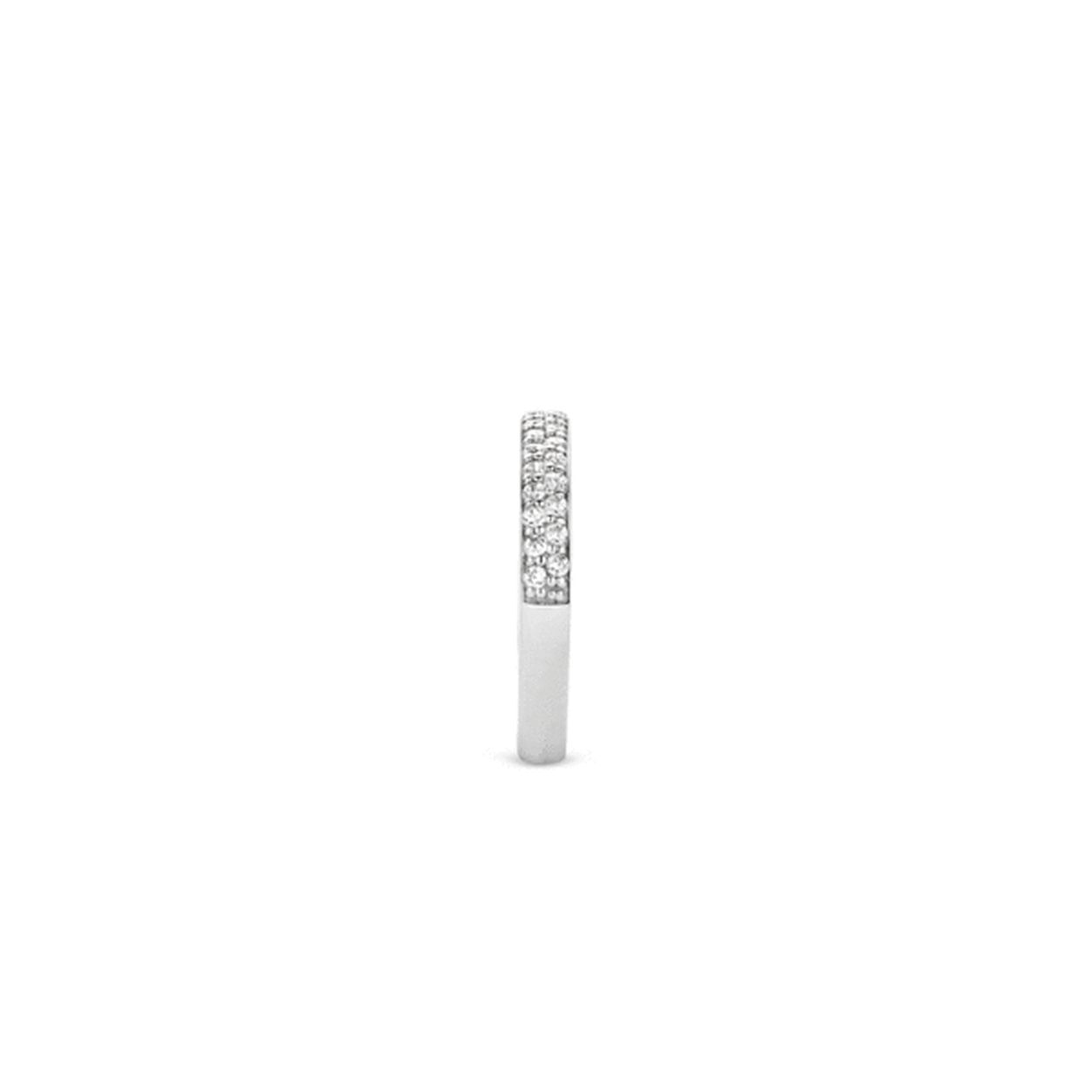 Deze sprankelende ring van TI SENTO - Milano heeft twee rijen met de hand pavé gezette zirkonia's die briljant geslepen zijn. De ring is een klassiek model binnen het Mix & Match concept van TI SENTO. De gerhodineerd sterling zilveren ring is perfect te combineren met bijna alle andere aanschuifringen uit de collectie. Deze ring kan natuurlijk ook solo worden gedragen. Dan is je look wat rustiger en kun je wellicht uitpakken met een grote armband.