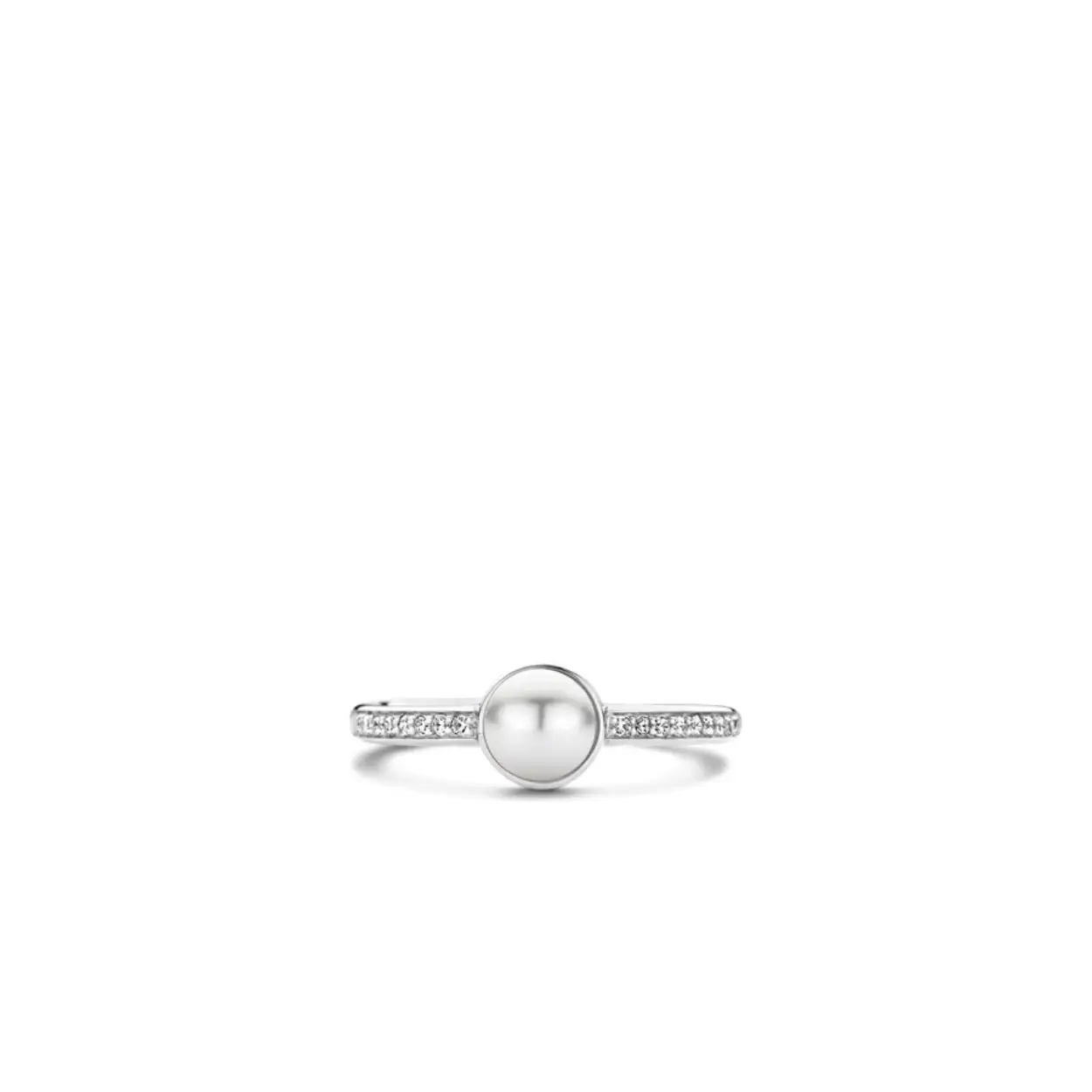 Deze TI SENTO zilveren parelring 12308PW pronkt met een glanzende parel en heeft een pavé van schitterende witte cubic zirconia steentjes langs de hele band. De ring is volledig vervaardigd uit premium 925 sterling zilver en gecoat met een laagje platina om het te beschermen tegen slijtage en om het stralend te houden. Dit luxueuze sieraad is ontworpen om je stijl te verheffen en jou te laten schitteren. Met parels kun je alle kanten op. Versier je handen met hun sierlijke schoonheid, stapel ze met andere ringen of maak onverwachte combinaties. Al onze ringen zijn nikkelvrij en hypoallergeen.