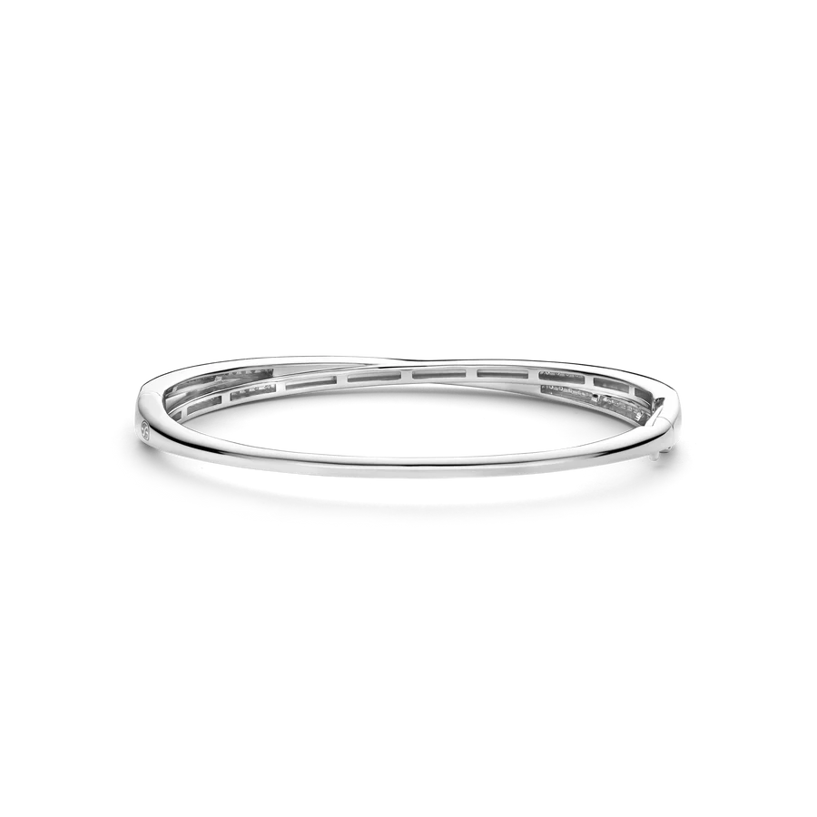De TI SENTO armband 23072ZI is een tijdloze klassieker, vervaardigd uit premium 925 sterling zilver en verguld voor een elegante en duurzame glans. Dit adembenemende ontwerp heeft een verweven structuur: één slanke en gepolijste zilvergekleurde bangle en de andere gedecoreerd met een schitterende pavé van cubic zirconia, wat zorgt voor een harmonieuze balans tussen sprankeling en verfijning. Perfect voor de zomer, vangt deze bangle de essentie van moeiteloze elegantie, die de heldere, zonovergoten dagen en koele, serene avonden weerspiegelt. Het strakke en klassieke silhouet maakt het een ideaal accessoire voor zowel casual uitjes als bijzondere gelegenheden. Hypoallergeen en nikkelvrij, biedt deze armband ultiem comfort en kwaliteit, waardoor het een veelzijdig en gekoesterd stuk is om je sieradencollectie compleet te maken.