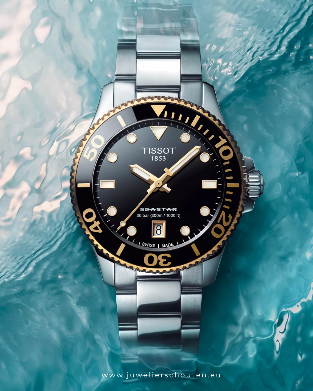 Je kan het voelen. Onder de golven is het stil. In kristalhelder water zie je de zonnestralen door het oppervlak breken. Om je pols de Seastar 1000 Quartz, de deur naar de onderwaterwereld. Met 36 mm heeft de Seastar 1000 Quartz een natuurlijk vertrouwen. Het is chic, assertief en veelzijdig, klaar om de jungle in te trekken en ook sterk genoeg om diep de zee in te duiken. Of je nu kiest voor de zwart, blauw of wit gelakte wijzerplaat, hij wordt geleverd met een roestvrijstalen kast en armband, een in 1 richting draaiende bezel met een mineraalglas inzetstuk, een geschroefde kroon en waterbestendigheid tot 30 bar (300m / 1000ft ). De band is snel te wisselen voor een oranje, witte, lichtblauwe of zwarte siliconen band. Verander je kijk en stap in een andere wereld.