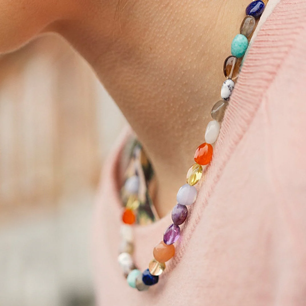 Prachtig Trollbeads edelstenen collier van 45 cm met Paarse Jade, Amethist, Maansteen, Labradoriet, Amazoniet en meer — harmonie, balans en innerlijke vrede in één sieraad. Verkrijgbaar bij Juwelier Schouten – Middenwaard, Heerhugowaard.