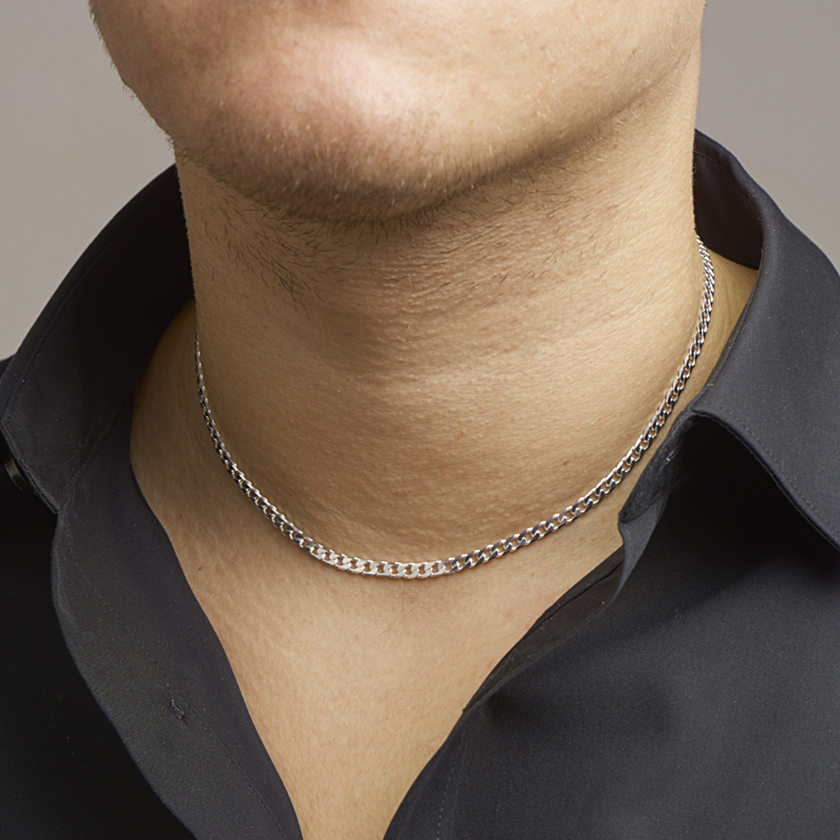 Zilveren lengte artikel met geslepen gourmette schakel. De schakelbreedte is 4.0mm.