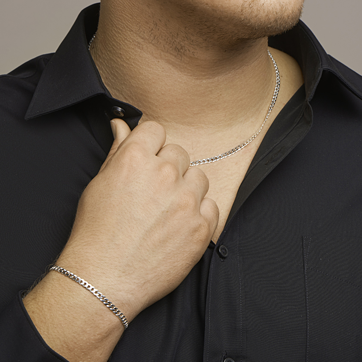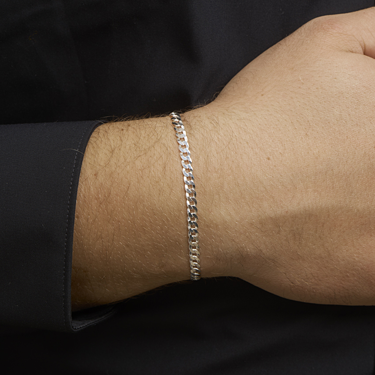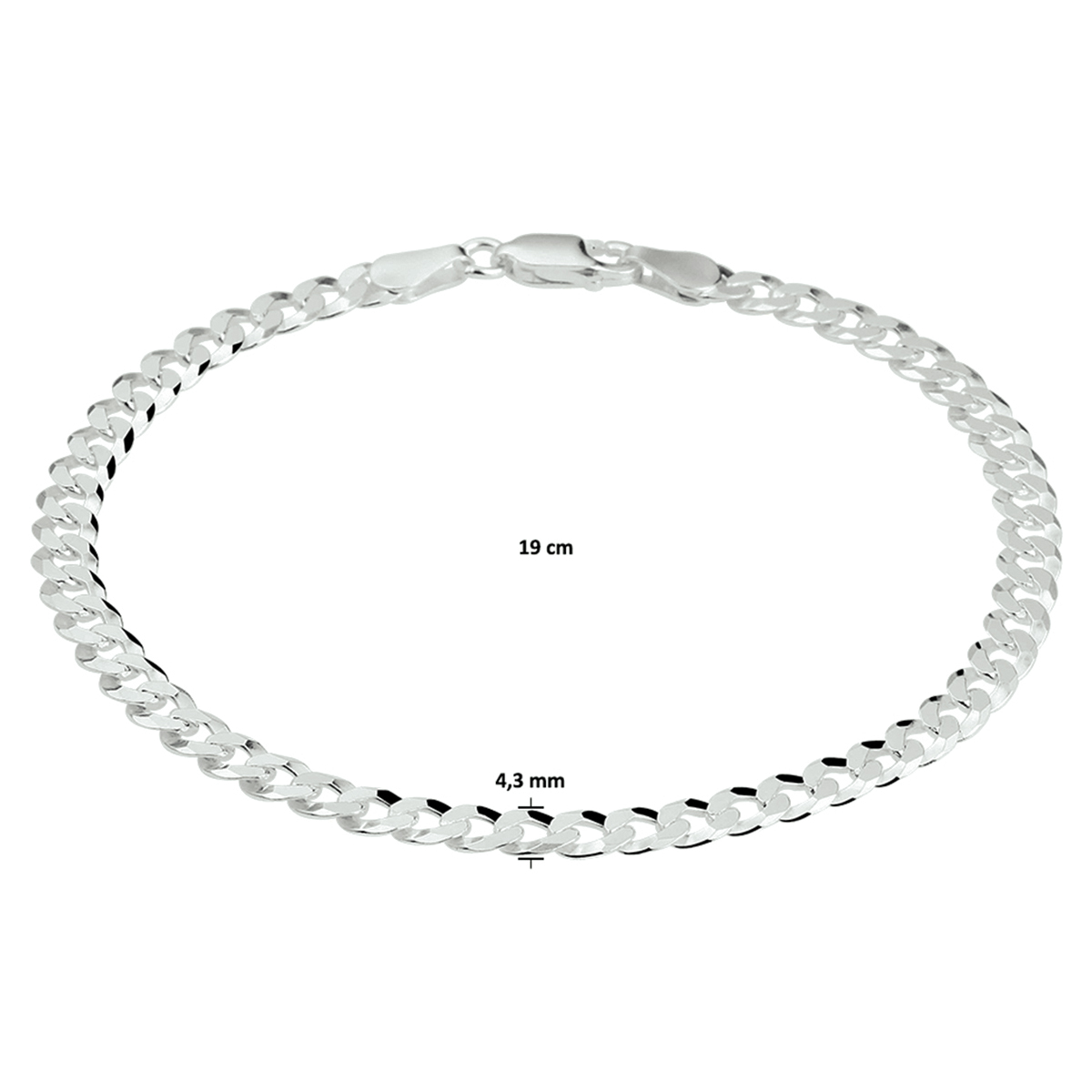 925 zilveren gourmette lengte artikel met een schakelbreedte van 4.3mm. Het lengte artikel heeft een karabijn sluiting.