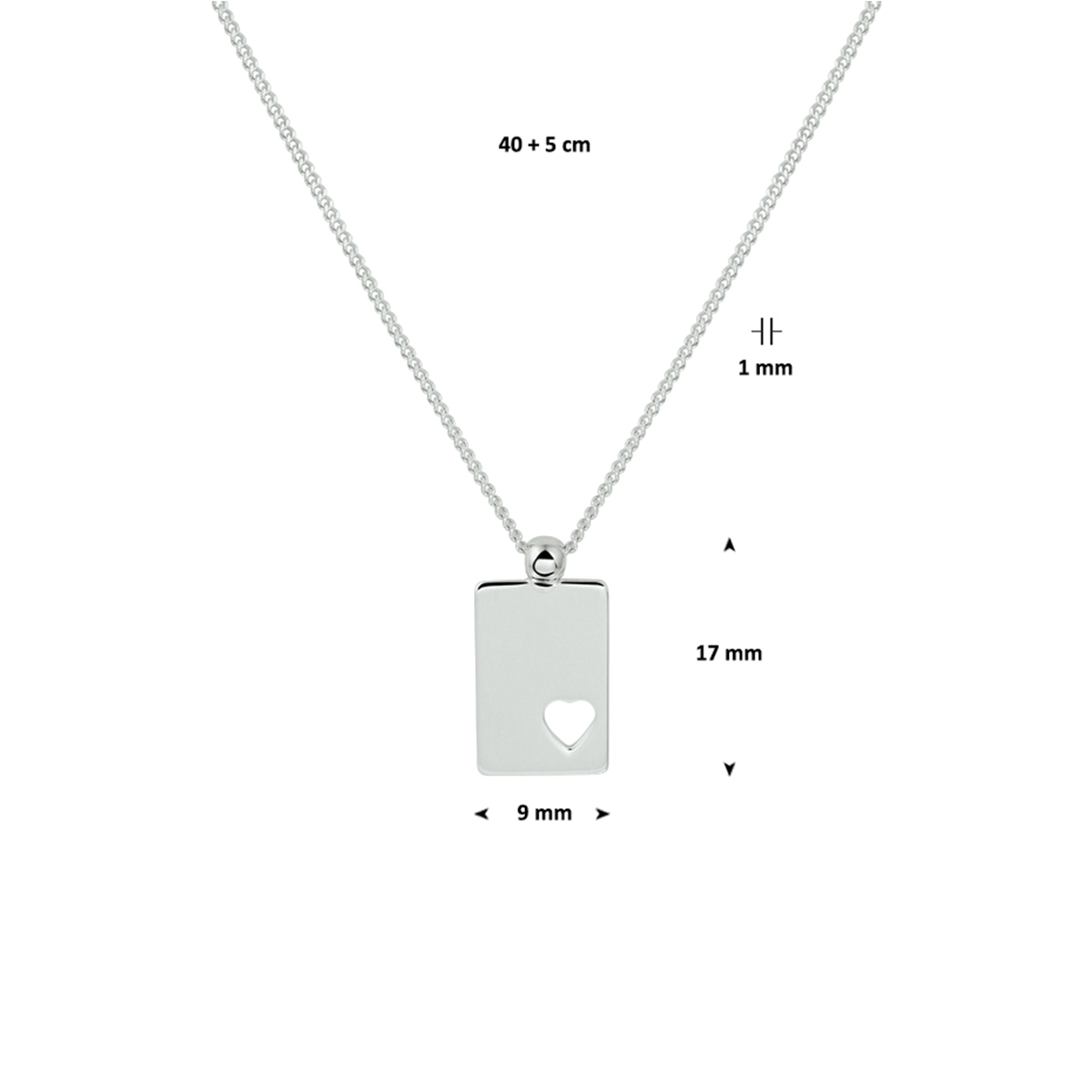 Gerhodineerd zilveren gourmet collier uitgevoerd met een graveerplaat van 17x9mm met een dikte van 0.8mm. Het collier heeft een draaglengte van 40cm en een extensie van 5cm. De schakelbreedte is 1.0mm.