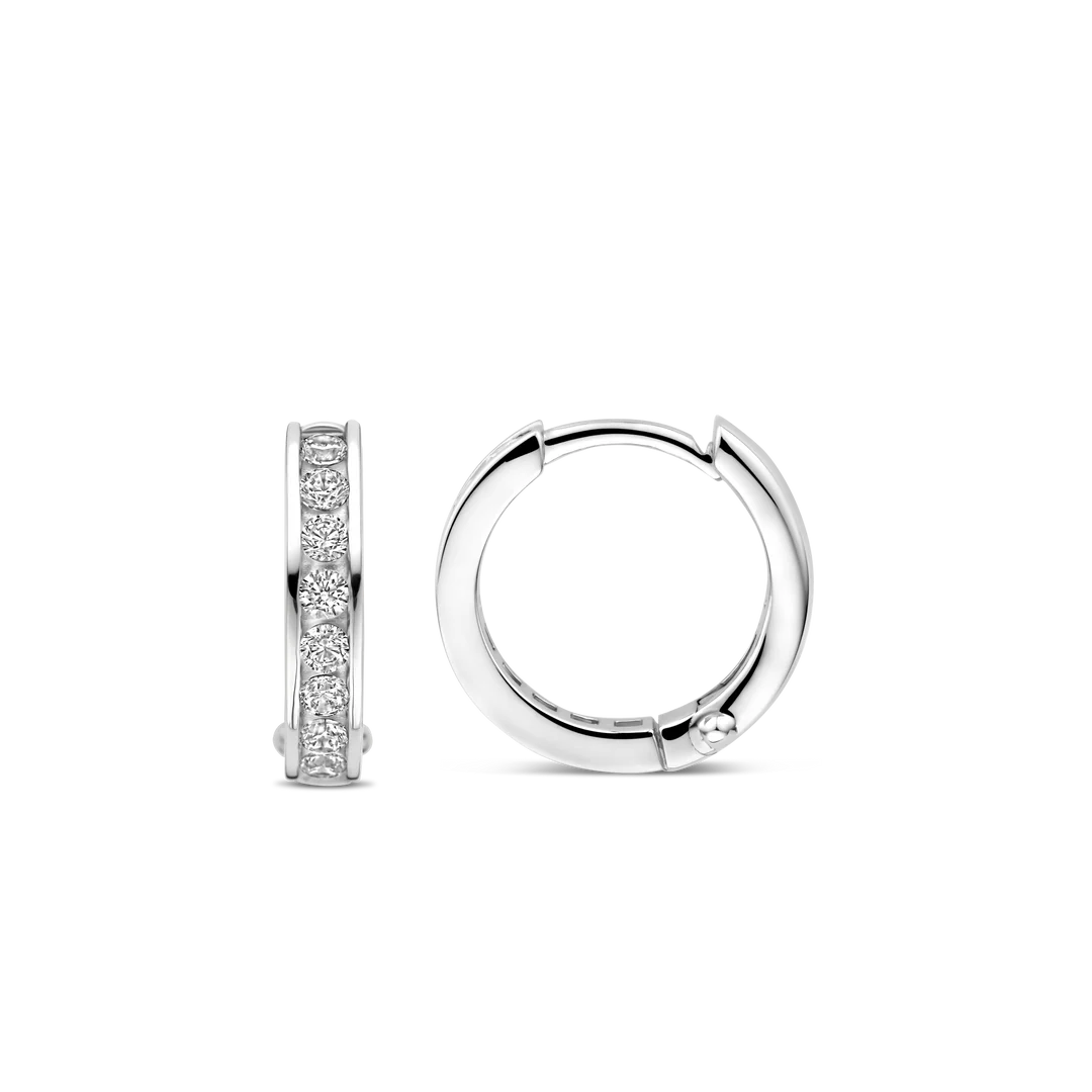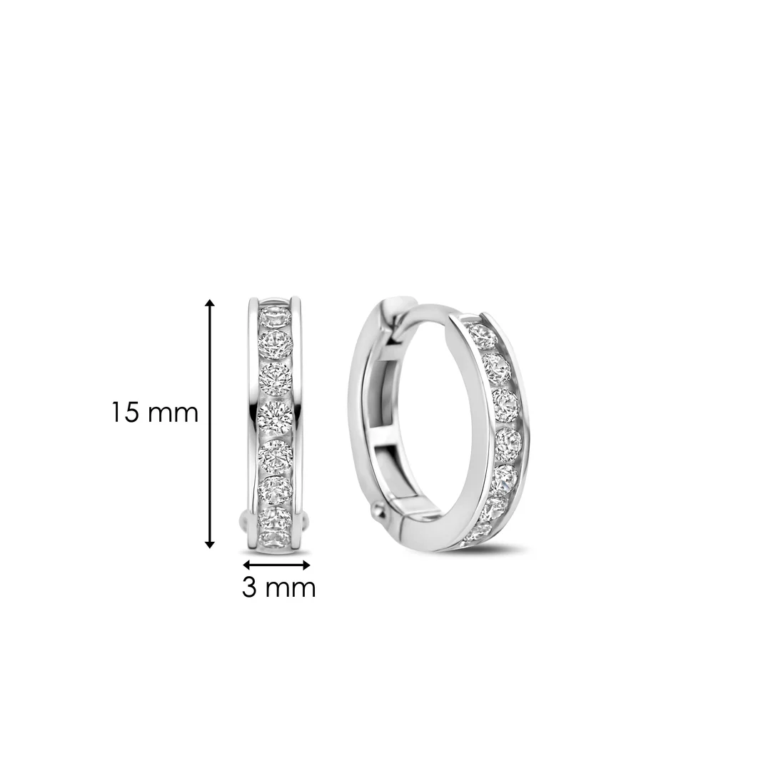 Zilveren klapooringen met zirkonia 15 mm | 7973ZI — elegante gerhodineerde zilveren oorringen met sprankelende zirkonia-steentjes en comfortabele klapsluiting. Perfect voor dagelijks dragen en feestelijke gelegenheden. Verkrijgbaar bij Juwelier Schouten – Middenwaard, Heerhugowaard.