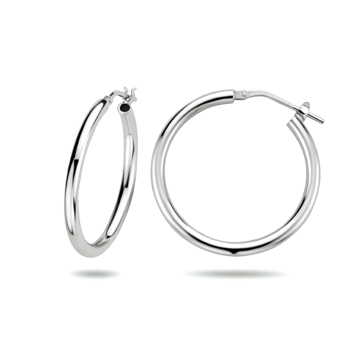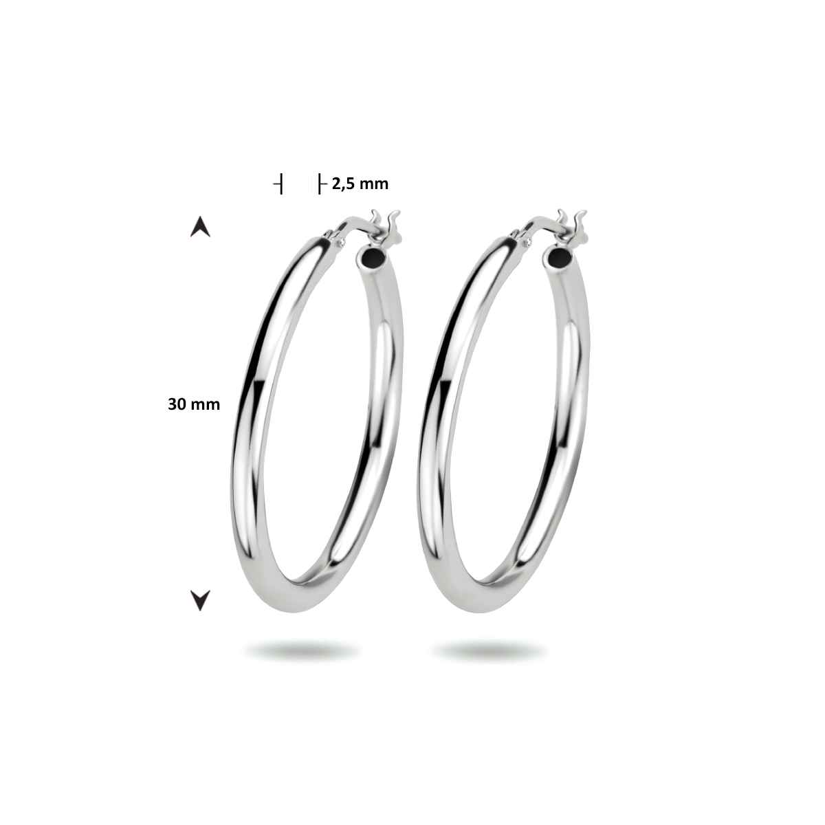 Gerhodineerd zilveren oorringen met een ronde buis en een hefboom-sluiting.