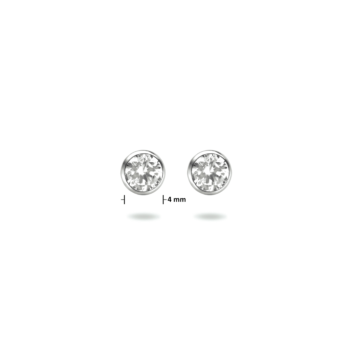 Beschrijving: Gerhodineerd zilveren oorknoppen met zirkonia.